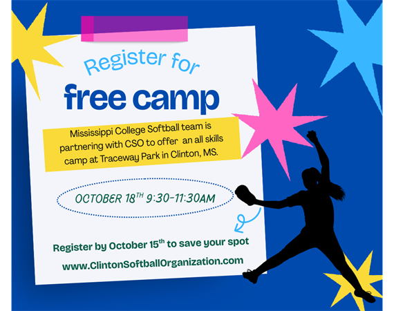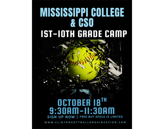 📣 FREE Softball Camp! Completely FREE!🥎Join us for the Mississippi College Softball Camp — open to girls in 1st–10th grade of all skill levels!📍 Traceway Park – Clinton, MS📅 October 18th Skills training, fun drills, and college-level coaching!Don’t miss out — bring your glove and get ready to play!
